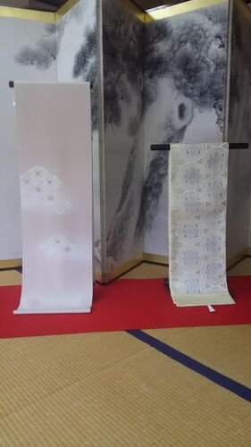 今日の一組は付下げと袋帯です。 付下げは20代から60代 袋帯は20代から50くらいまでお使い頂けます。